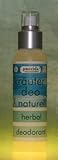 vegan, ohne tierische Rohstoffe, tierversuchsfrei seit 1979.mildes Deodorant.hochwertige sanfte Naturkosmetik ohne Konservierungsmittel.erfrischend, angenehm nach Citrus und Kräutern duftend.verhindert unangenehme Geruchsbildung. kräuter deo naturell:Dieses angenehm nach Citrus und Kräutern duftende und erfrischende Deodorant sollte zum festen Bestandteil Ihrer täglichen Körperpflege gehören. Ohne die natürlichen Hautfunktionen zu beeinträchtigen, verhindert das Deo durch seine milde und ausgewogene Zusammensetzung von desodorierenden Natursubstanzen die lästige Geruchsentwicklung, die auf der Haut bei der Schweißzersetzung entsteht.Wie alle unsere Produkte enthält auch dieses Deodorant kein Treibgas. Das kräuter deo naturell ist sowohl bei Männern als auch bei Frauen beliebt.